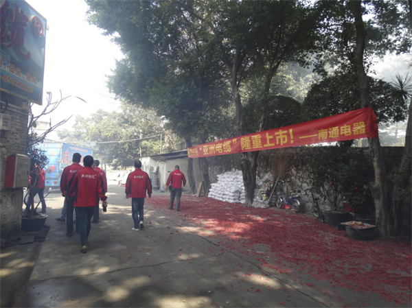 隨后來到了一級(jí)經(jīng)銷商佛山海釔電器,門前已準(zhǔn)備好鞭炮祝賀亞洲電纜上市,品質(zhì)首選亞洲電纜,合作雙贏!