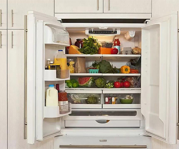 存放的食品與箱壁之間、食品與食品之間均應(yīng)留出1cm左右的空隙。冰箱的工作原理就是抑制冰箱內(nèi)食物水分的蒸發(fā),而滿滿的空間使得冰箱需要更多的電量能耗來(lái)抑制食物水分的蒸發(fā)。