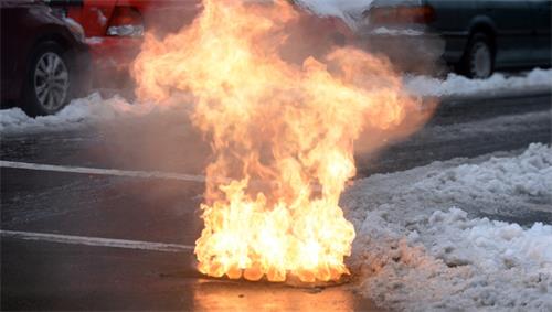 據目睹現場的居民刁女士介紹,事發時,她先是聞到一股焦味,然后看到一個混凝土井蓋冒出白煙,隨后井蓋“轟”的一聲被炸起,砸在旁邊的兩輛車上。其中,一輛車的大燈和引擎蓋都被砸壞了,另一輛車的后尾箱被砸了一個小坑,所幸沒有人員受傷。